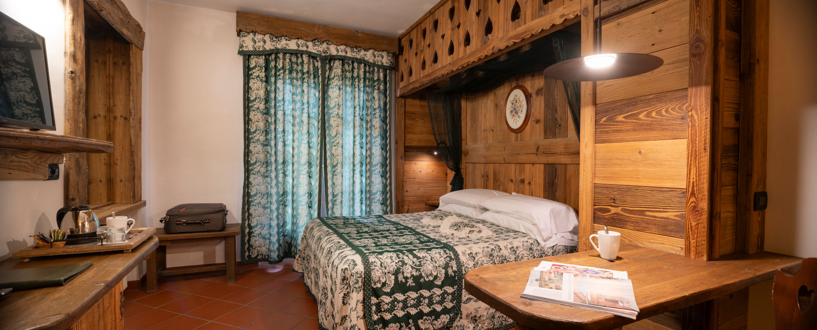 Camera dall’atmosfera calda e avvolgente, dove il legno sapientemente lavorato crea un senso di intimità e quiete. La Deluxe “Les Bouquets” offre circa 20 m² di comfort accogliente, con affaccio sulla città di Aosta o sulla vallata, per godere di una vista che cambia con le stagioni. Ideale per 1 - 2 persone, dispone di letto matrimoniale, bagno privato con doccia e connessione Wi-Fi. Un piccolo rifugio dove ritrovare equilibrio e serenità, immersi nel fascino autentico delle Alpi.