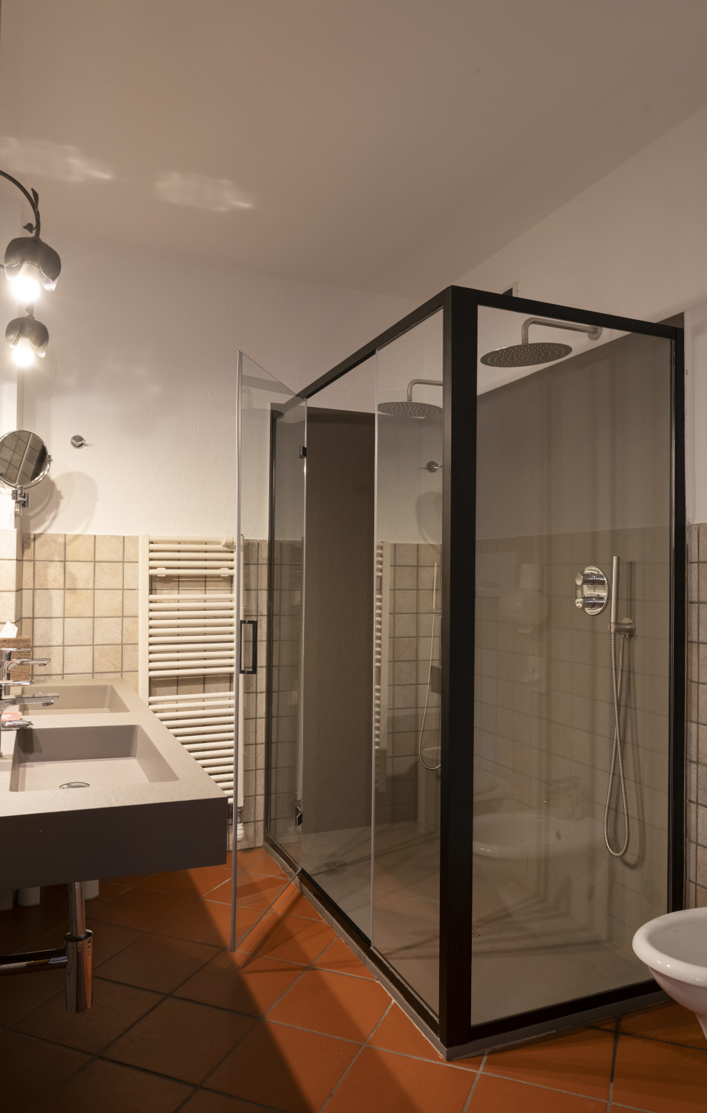 Con una superficie di 30 m², questa Junior Suite è ideale per una fuga di coppia: alcune camere dispongono di doccia, altre combinano doccia e vasca da bagno, mentre in alcune il soffitto con travi a vista richiama l’essenza più autentica della tradizione alpina. Un rifugio perfetto per ritrovare intimità e rigenerare lo spirito.